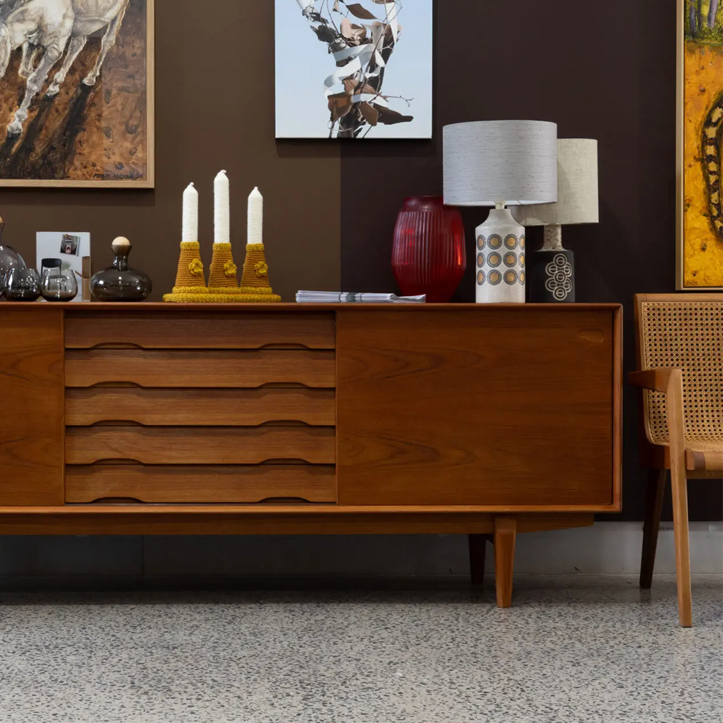 Some light discolouration is visible on one door. A subtle trace of a previous restoration that does not detract from the piece's overall beauty. A substantial and well-executed design from a respected Danish manufacturer, offering both function and timeless appeal.